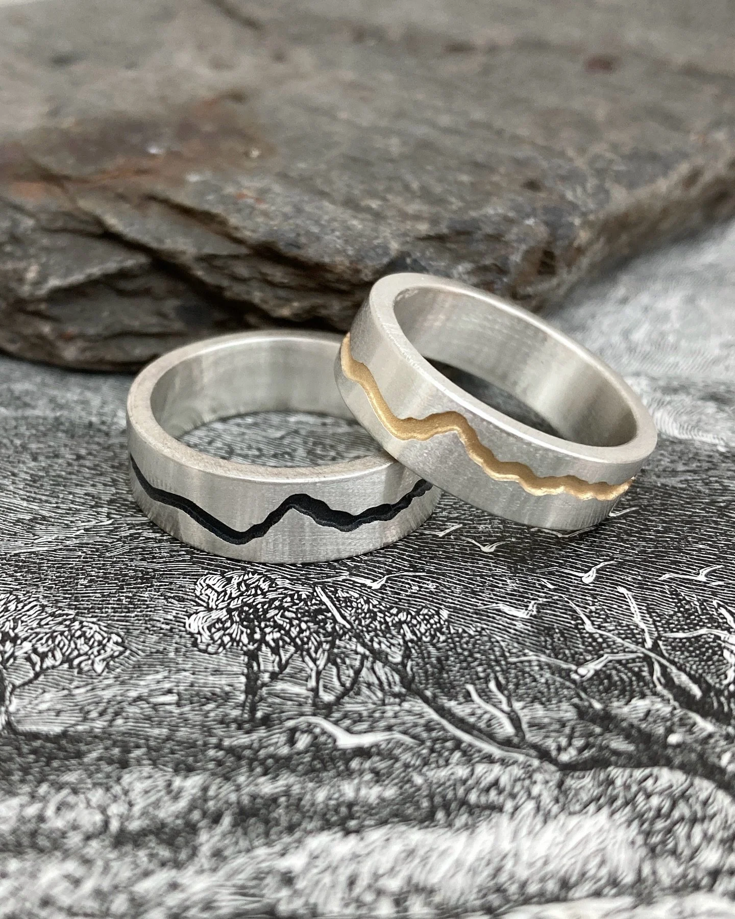 Custom Mountain Range Ring 18ct Gold