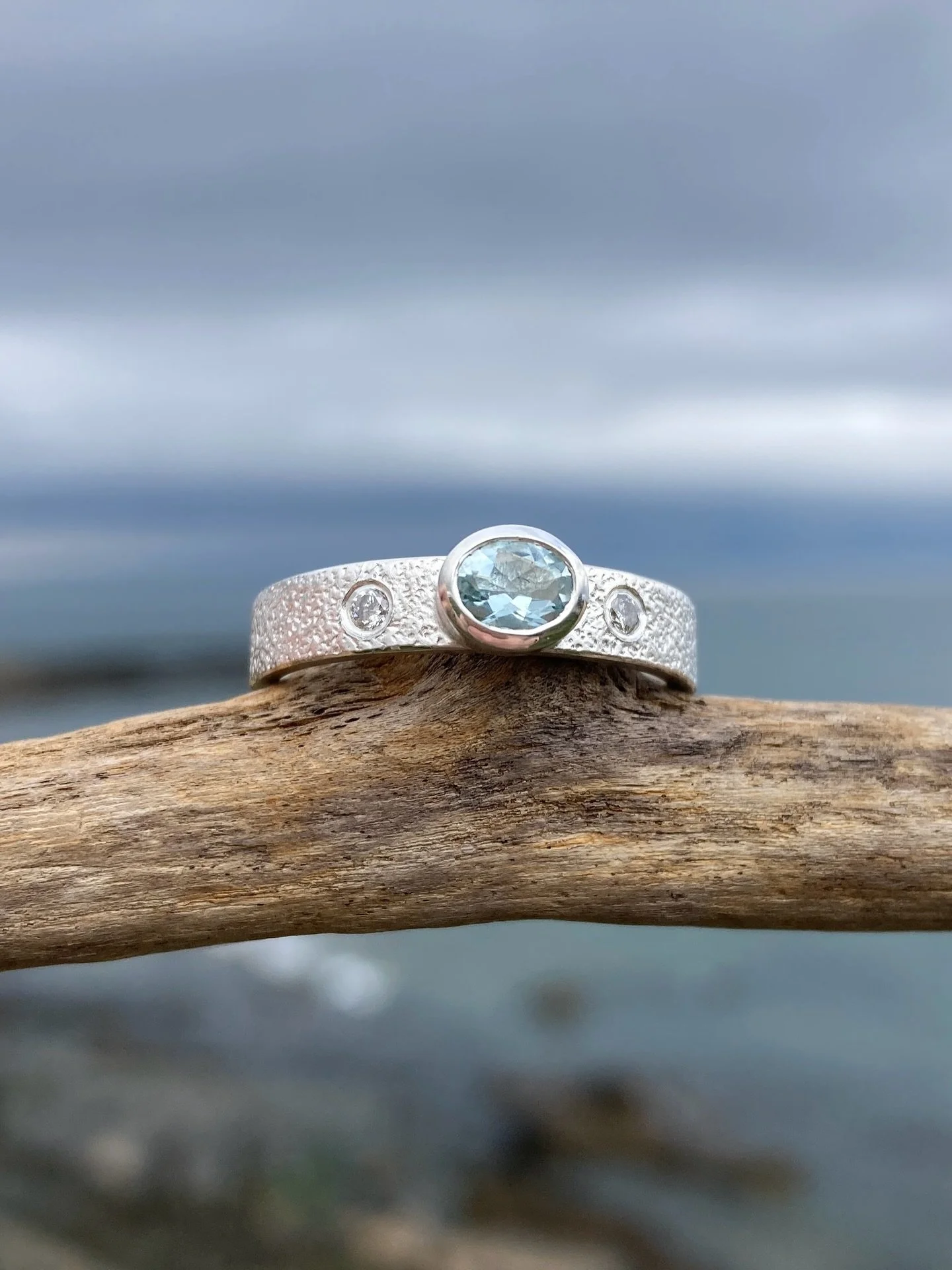 Each ring is made to order by Hannah in her seaside studio in North Berwick. Your chosen stretch of coastline is hand-cut from a piece of recycled silver, each cut pieces sits together perfectly on the finger. The result is a striking piece of jewellery with a deeply personal story behind it.